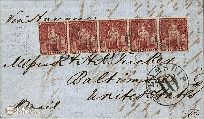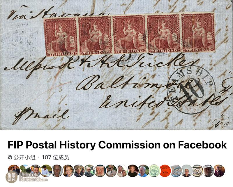 亨里克·穆里岑先生,可能有感于美国近日空袭委内瑞拉的事件,所以在群组的封面图片贴出了一枚南美加勒比地区特立尼达寄往美国的一件邮政史藏品,这件邮品是19世纪50年代加勒比地区邮政史的杰出见证,不仅展示了特立尼达(Trinidad)早期邮票的独特魅力,也深刻揭示了万国邮政联盟(UPU)成立前西印度群岛与美国之间复杂的远洋邮路。封上贴有一组极其罕见的“不列颠尼亚坐像”无面值邮票五连刷**,该图案由 Perkins Bacon 公司凹版印刷,以颜色区分面值(红色代表1便士),其女神手持长矛、倚靠盾牌并背向帆船的设计,象征着维多利亚时代英国海上贸易的繁荣。在古典邮政史中,如此长的连票能完整保留在实寄封上具有极高的视觉冲击力和收藏稀缺性。信封左上角手写的“via Havana”清晰记录了其经由古巴哈瓦那中转的航线,而右侧显著的黑色“STEAMSHIP 10”戳记则是巴尔的摩入境邮戳,标志着收件人需支付10美分的到付邮资。收件地址为当时著名的航运商号“Messrs. R & H R Tucker”,这一背景进一步证实了其作为“塔克通信”这一著名存世邮简的学术价值。基作为亨里克·穆里岑等学者推崇的“制度史阐释”典范,它不仅是一件艺术品,更是全球早期邮政运行规则的珍贵实物档案。说到FIP在脸书的群组,据不完全统计在此之前唯有FIP邮政用品委员会群组,创建于2018年9月7日,目前成员有1633位。