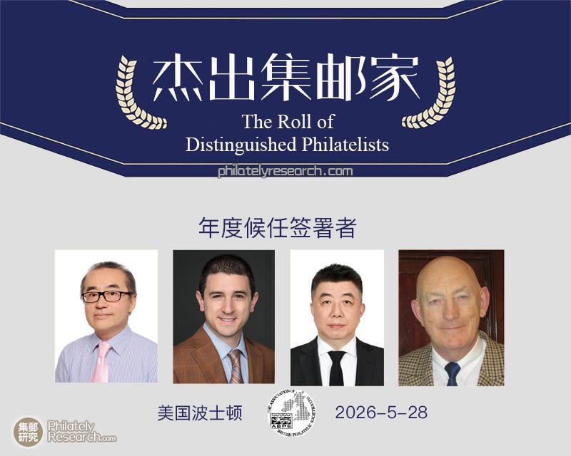 2026年3月5日,"杰出集邮家名册"管理委员会公布四位新入选者,“杰出集邮家名册” (缩写RDP)是西方国家集邮界主导的最高、最负盛名的荣誉。本年度的获选者为:中国上海的丁劲松、中国香港的张文德、英国的乔恩·艾奇逊、美国的亚历山大·T·海曼。值此名册签署105周年之际,2026年5月28日(周四)下午将在波士顿2026世邮会展馆举行隆重的签署仪式,作为"2026波士顿世界集邮博览会"的重要环节,当地时间下午5:00正式开始的仪式将通过Zoom向全球直播,仪式后将举办酒会诚邀所有与会者共襄盛举。