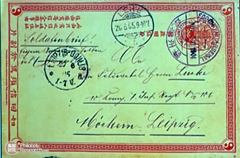 第一件赝品:1904年11月30日清二次片福州船政寄德国莱比锡(图1)